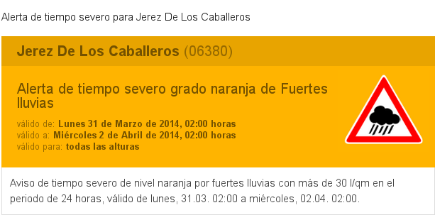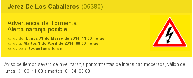 De momento la Agencia Estatal de Meteorología (AEMET) no nos tiene puesto ningún aviso pero sí algunas páginas web no oficiales como esta (para acceder espera 5 segundos y dale a saltar publicidad en la esquina superior derecha) http://adf.ly/iAIn8