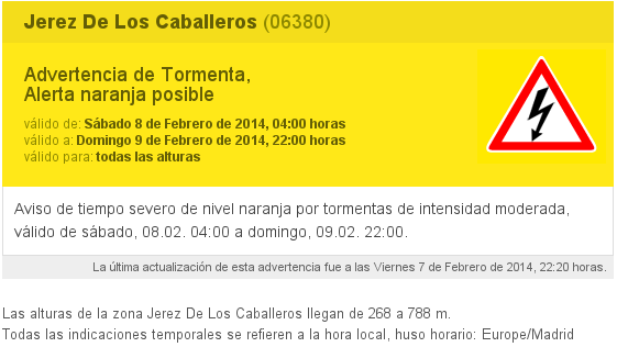 Tenemos activado aviso amarillo por acumulación de 40 l/m2 en 12 horas y rachas de viento de 80 km/h (según AEMet)
